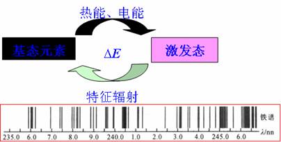 每一條所發(fā)射的譜線的波長,取決于躍遷前后兩個(gè)能級(jí)之差。由于原子的能級(jí)很多,原子在被激發(fā)后,其外層電子可有不同的躍遷,但這些躍遷應(yīng)遵循一定的規(guī)則(即“光譜選律”),因此對特定元素的原子可產(chǎn)生一系列不同波長的特征光譜線,這些譜線按一定的順序排列,并保持一定的強(qiáng)度比例。