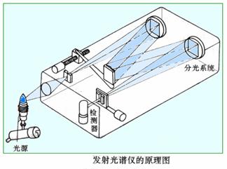 進(jìn)行光譜分析的儀器設(shè)備主要由光源、分光系統(tǒng)(光譜儀)及觀測系統(tǒng)三部分組成。