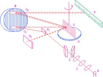 羅蘭圓:Rowland(羅蘭)發(fā)現(xiàn)在曲率半徑為R 的凹面反射光柵上存在著一個(gè)直徑為R的圓,不同波長的光都成像在圓上,即在圓上形成一個(gè)光譜帶;