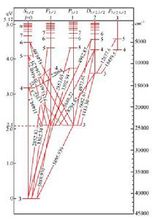 原子發射光譜法(AES),是利用原子或離子在一定條件下受激而發射的特征光譜來研究物質化學組成的分析方法。根據激發機理不同,原子發射光譜有3種類型:①原子的核外光學電子在受熱能和電能激原子發射光譜發而發射的光譜,通常所稱的原子發射光譜法是指以電弧、電火花和電火焰(如ICP等)為激發光源來得到原子光譜的分析方法。以化學火焰為激發光源來得到原子發射光譜的,專稱為火焰光度法。②原子核外光學電子受到光能激發而發射的光譜,稱為原子熒光(見原子熒光光譜分析)。③原子受到X射線光子或其他微觀粒子激發使內層電子電離而出現空穴,較外層的電子躍遷到空穴,同時產生次級X射線即X射線熒光(見X射線熒光光譜分析)。在通常的情況下,原子處于基態。基態原子受到激發躍遷到能量較高的激發態。激發態原子是不穩定的,平均壽命為10-10~10-8秒。隨后激發原子就要躍遷回到低能態或基態,同時釋放出多余的能量,如果以輻射的形式釋放能量,該能量就是釋放光子的能量。因為原子核外電子能量是量子化的,因此伴隨電子躍遷而釋放的光子能量就等于電子發生躍遷的兩能級的能量差 ,式中h為普朗克常數;c為光速;ν和λ分別為發射譜線的特征頻率和特征波長。